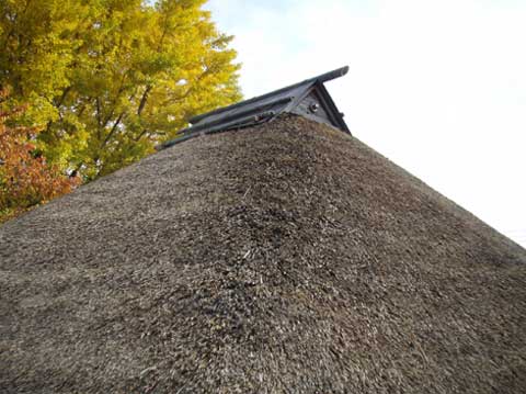 平成20年11月完了。木造平屋建 本堂茅葺屋根修繕工事